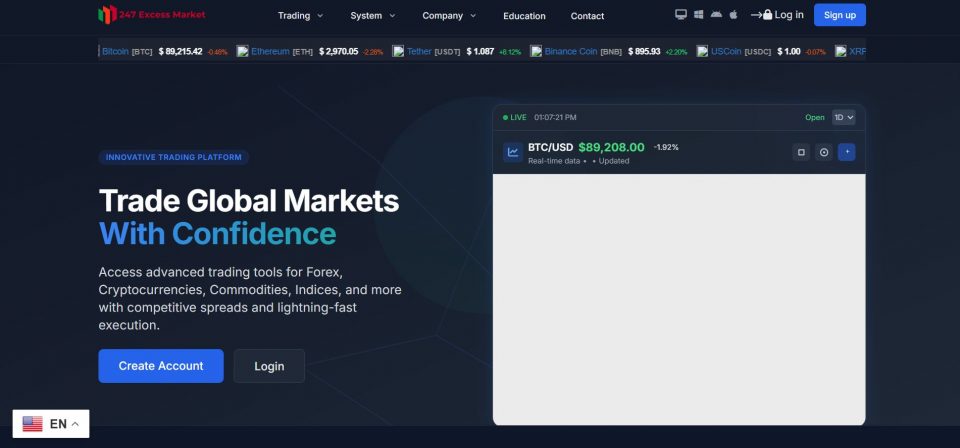 247ExcessMarket (247excessmarket.com) presents itself as an online trading broker.