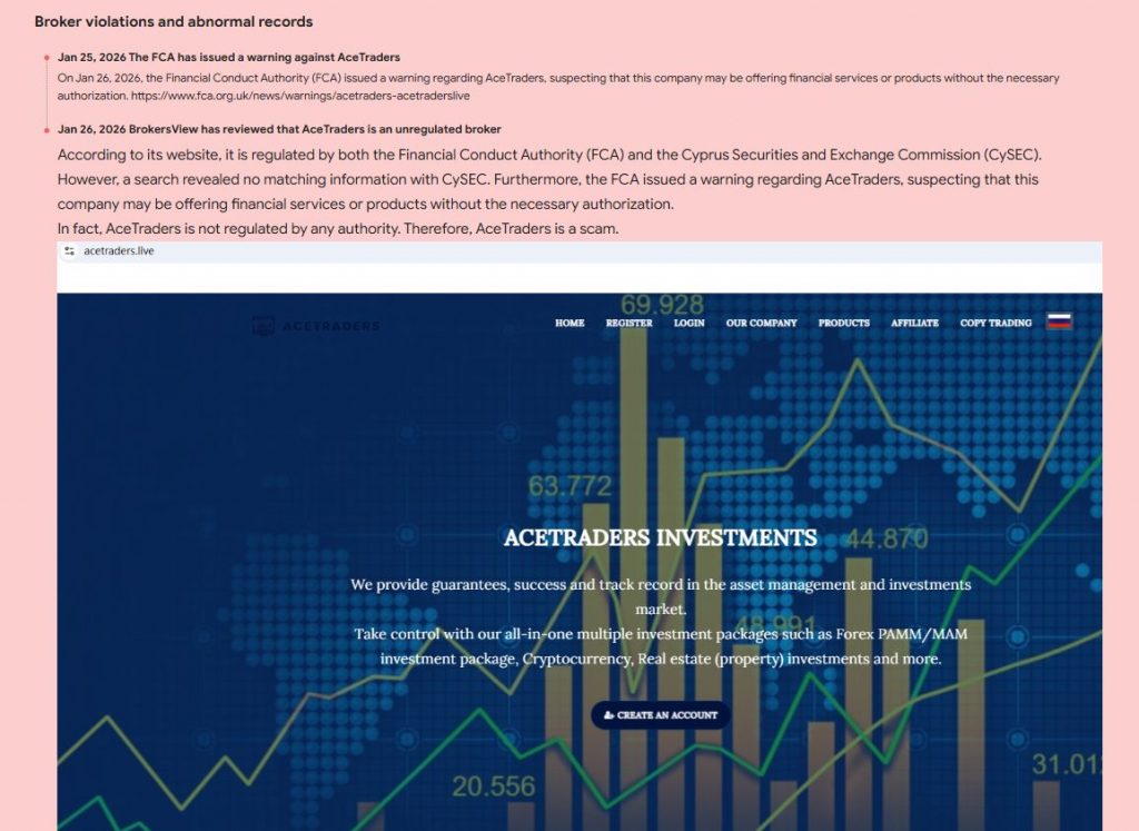 AceTraders shows numerous alarming red flags.