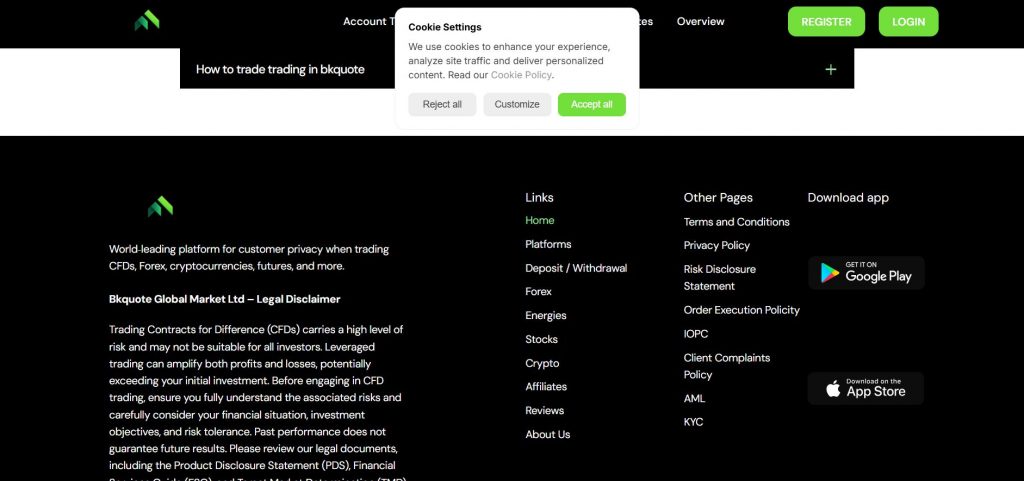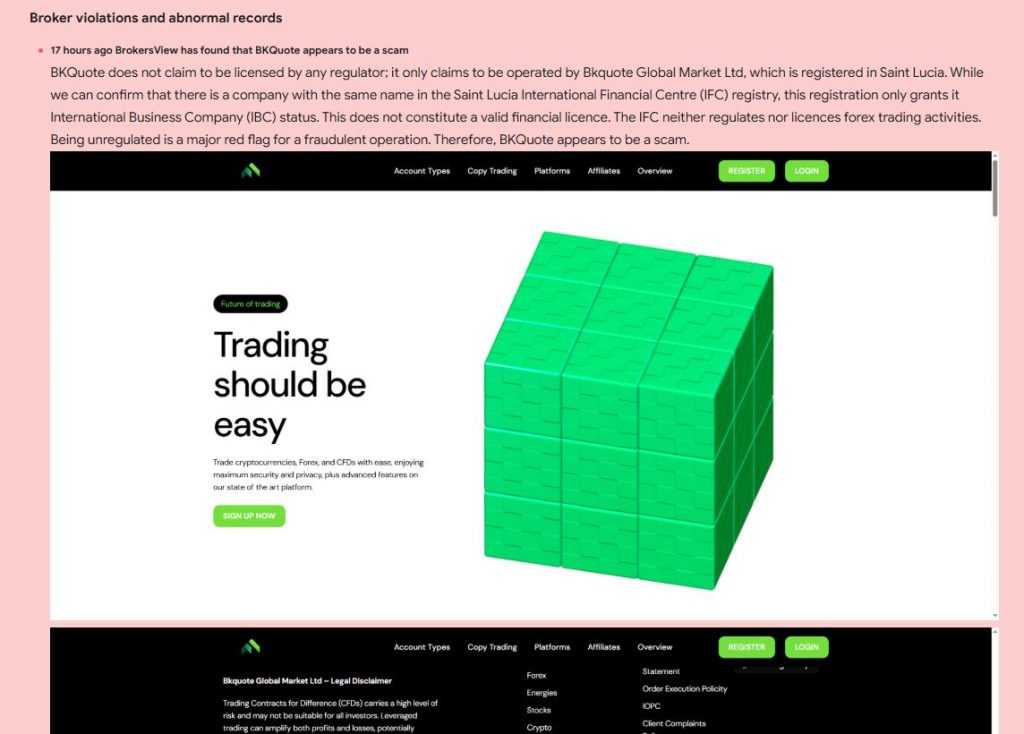 BKQuote (bkquote.com) presents itself as an online trading broker for global clients.