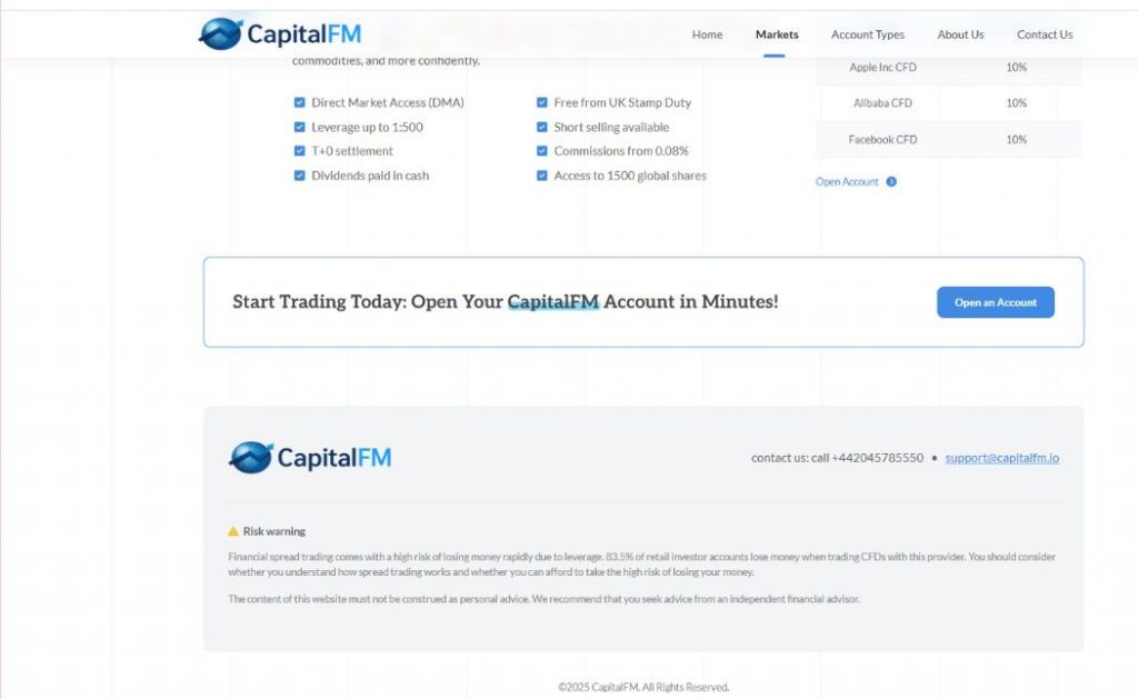 CapitalFM (capitalfm.cc) claims to offer professional trading across multiple asset classes.