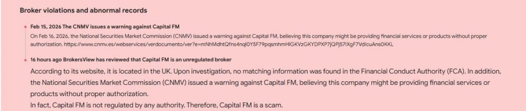 CapitalFM (capitalfm.cc) claims to be UK-regulated since 2005.