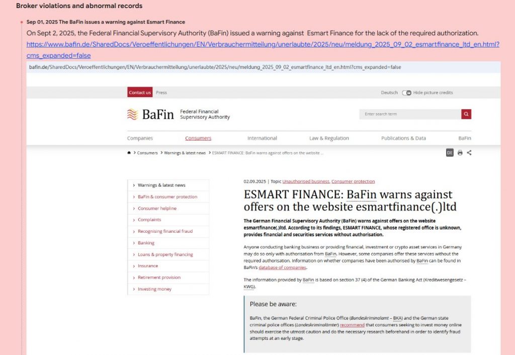 EsmartFinance promotes itself as a licensed and regulated broker. However, no license numbers or regulator details are shown on the website. There is no confirmation of authorization from FCA, CySEC, or ASIC. A legitimate broker always displays verified regulatory documents for clients. The absence of regulatory proof is a serious red flag.