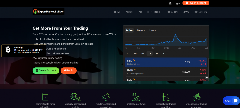 Expertmarketbuilder broker (expertmarketbuilder.top) launched in April 2025. Its domain registration is very recent and suspicious. The site uses sleek marketing to attract novice traders. This newness conflicts with any longstanding claims it might make.