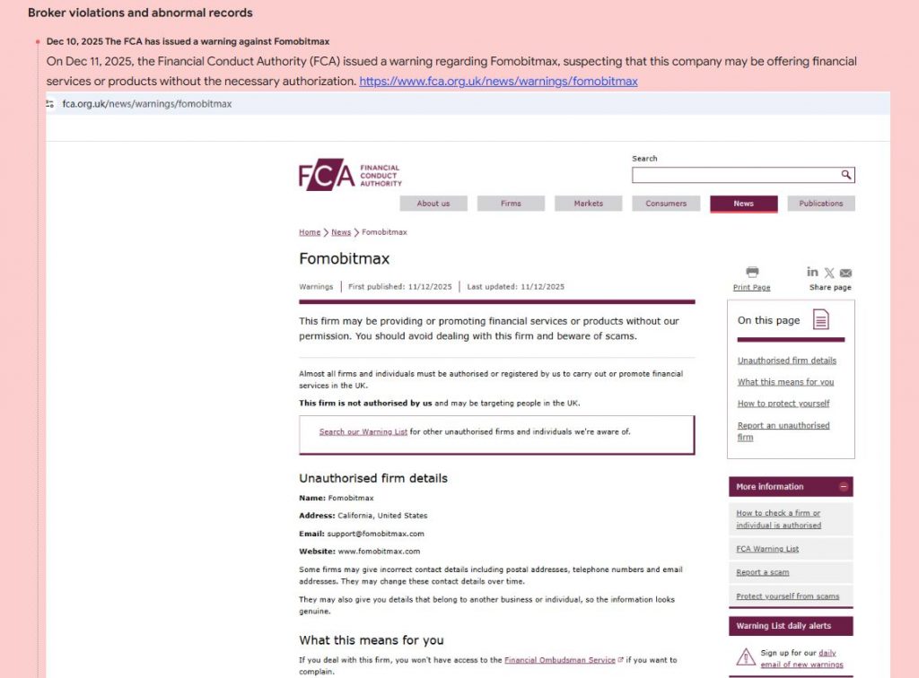 FomoBitMax Broker Review – Claimed Regulation and Licensing