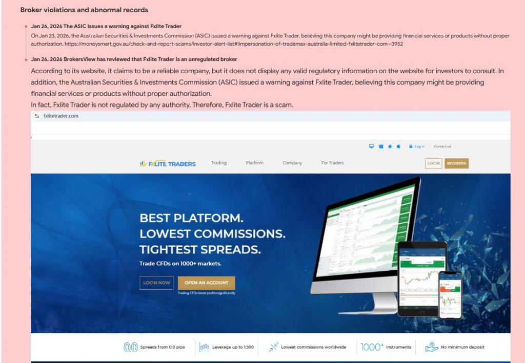 FXLiteTrader (fxlitetrader.com) presents itself as an online forex trading platform.