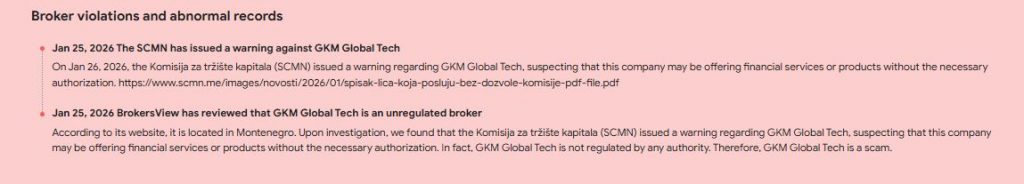 Major international regulators do not list this broker as licensed.