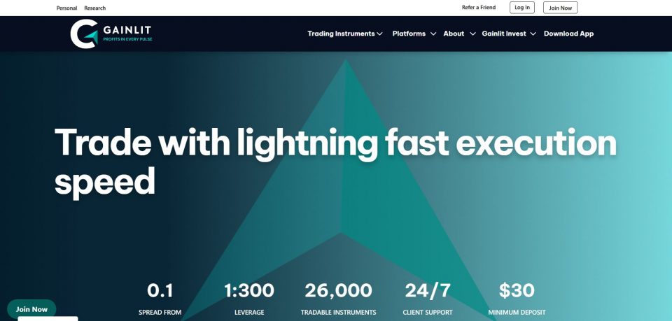 GainLit advertises a modern online investment dashboard.