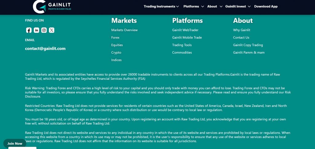GainLit does not clearly disclose any regulatory licenses.