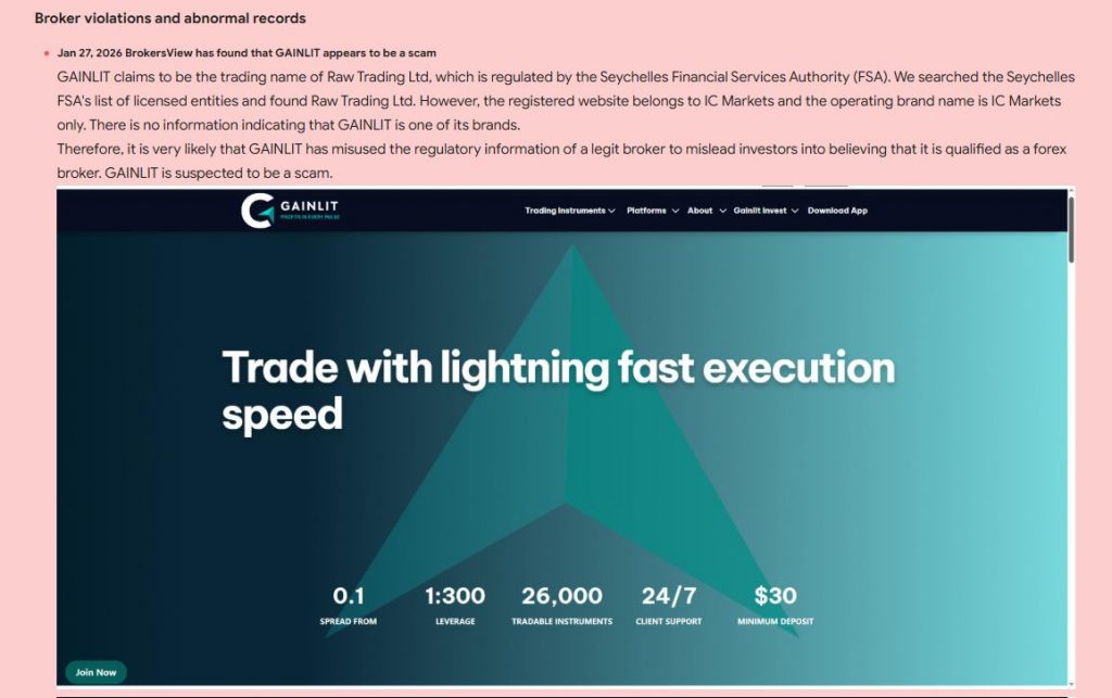 GainLit displays numerous alarming red flags.