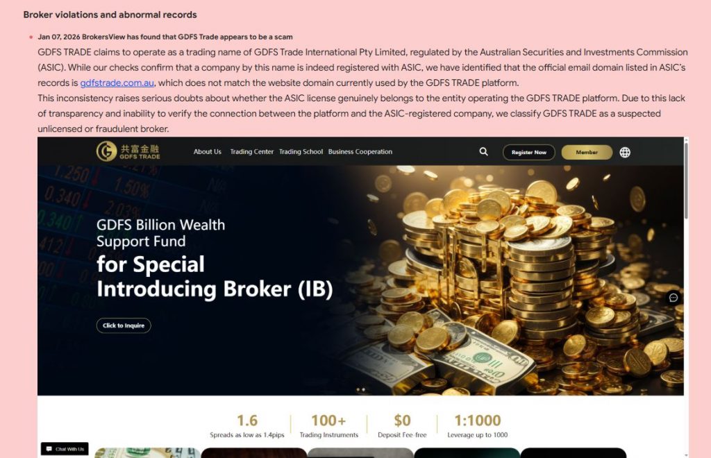 GDFSTrade does not clearly disclose any regulatory authorization.