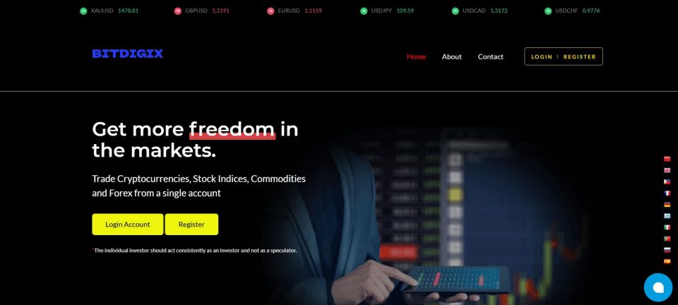 Bitdigix (bitdigix.com) presents itself as a comprehensive trading platform. The company claims to offer access to various financial markets, including cryptocurrencies, stocks, forex, commodities, and indices. However, the domain’s registration details are not publicly available, raising concerns about the broker’s credibility.