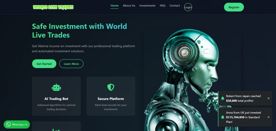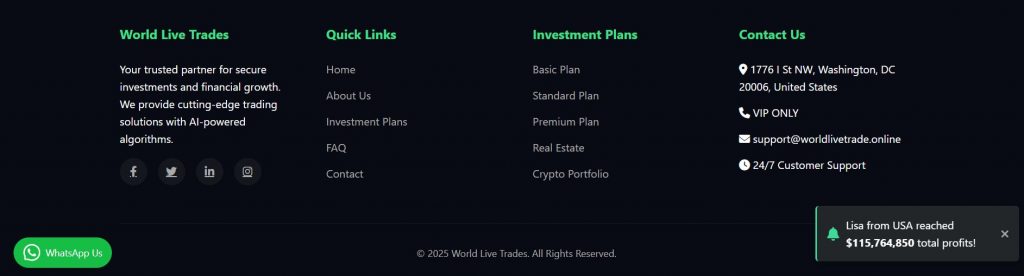 This article presents a clear World Live Trade review of the broker operating via worldlivetrade.online. The broker claims to deliver “lifetime income” through automated trading and diversified investment options. Their website lists several asset classes including forex, stocks, crypto, real‑estate and bonds under one roof. Despite these broad claims, the absence of verifiable historical track record is notable. In this World Live Trade review we will explore the key details, inconsistencies and warning signs.