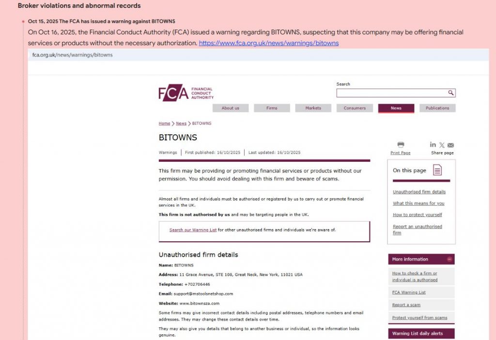 This Bitowns review examines the firm operating via bitownsza.com. The broker presents itself as a new investment platform in forex and crypto markets. It claims global access, high returns, and advanced technology. However, the domain is recent and the company structure lacks transparency. In this Bitowns review we break down the key details, statements and caution signals.