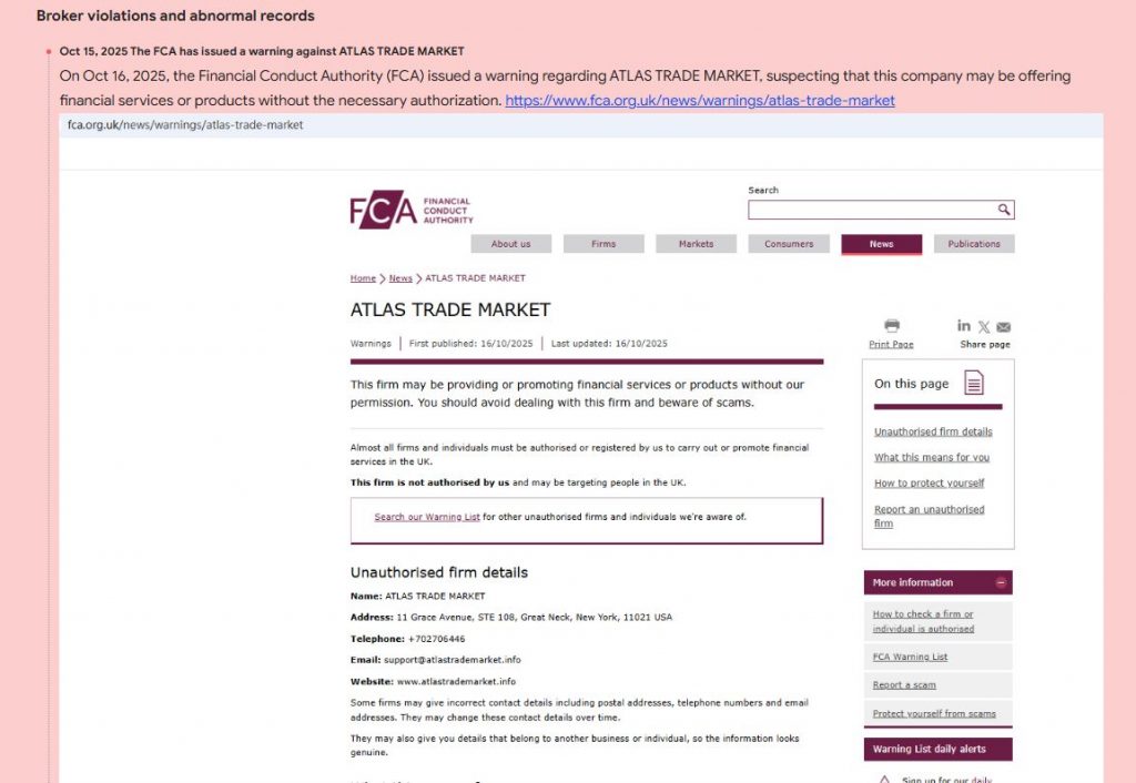 This Atlas Trade Market review covers the broker operating via atlastrademarket.info. The platform claims to offer CFD trading in forex, equities, commodities, and futures instruments. It also advertises “professional” trading conditions and global market access. The website lists an address and contact details that suggest a physical presence. Nevertheless, significant transparency gaps and unverified claims raise concerns. In this Atlas Trade Market review we examine its licence status, trading terms and risk signals.