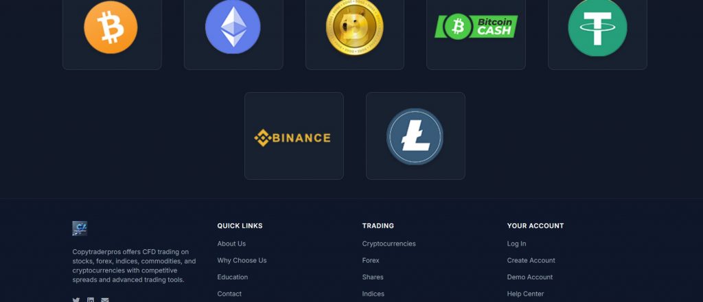 CopyTraderPros states that it uses a modern and powerful trading system. However, the site does not specify which platform it provides. There is no mention of MetaTrader or any other reputable software. Users must register before viewing the trading interface, which prevents independent verification. Technical information about security or data protection is also missing. In our CopyTraderPros review, these omissions indicate a lack of trustworthiness and professionalism.