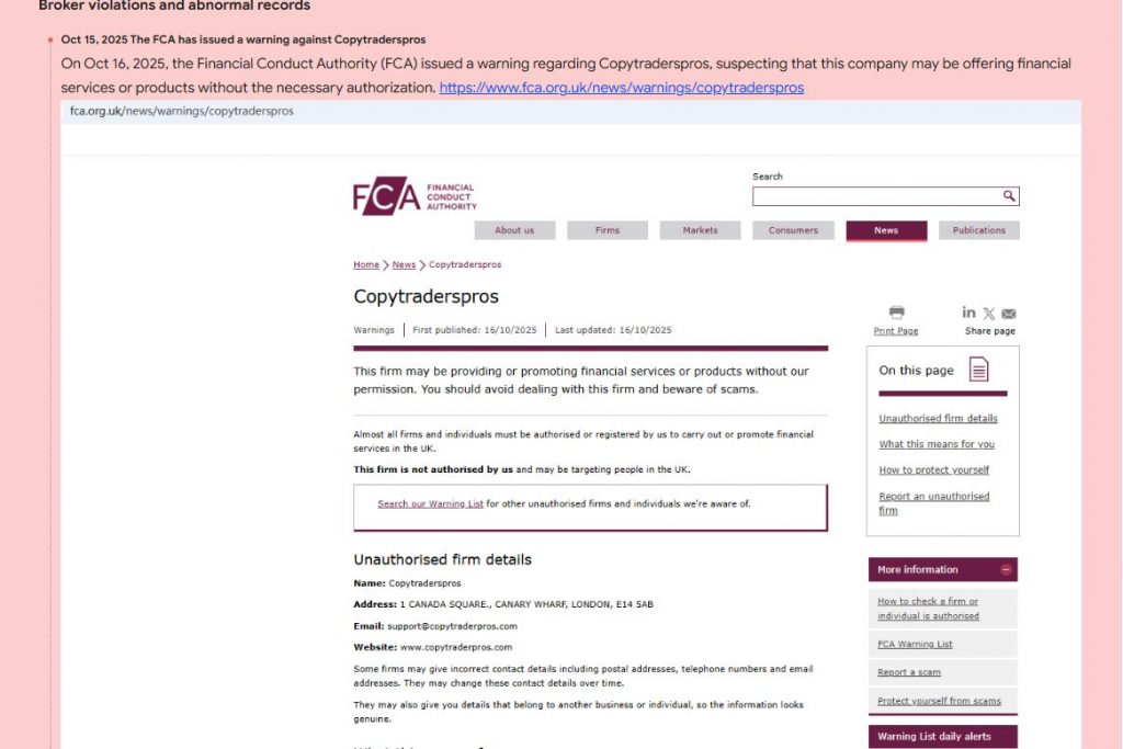 CopyTraderPros shows several characteristics typical of scam brokers. It attracts traders with promises of high returns and automated profits. The broker may allow small withdrawals to build trust, then block larger ones. It could request additional deposits under false reasons like “account verification.” Unregulated payment methods may also be used to hide transactions. Such behavior is common in fraudulent trading schemes.