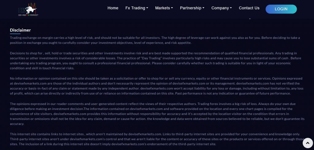 DeviseFX Markets claims to use a modern and intuitive trading platform. However, the site does not mention which software is provided. There is no reference to reliable platforms like MetaTrader 4 or MetaTrader 5. Users cannot test the system without creating an account, limiting transparency. The broker also provides no information about security measures or data protection. In our DeviseFX Markets review, these gaps raise concerns about technology reliability and safety.