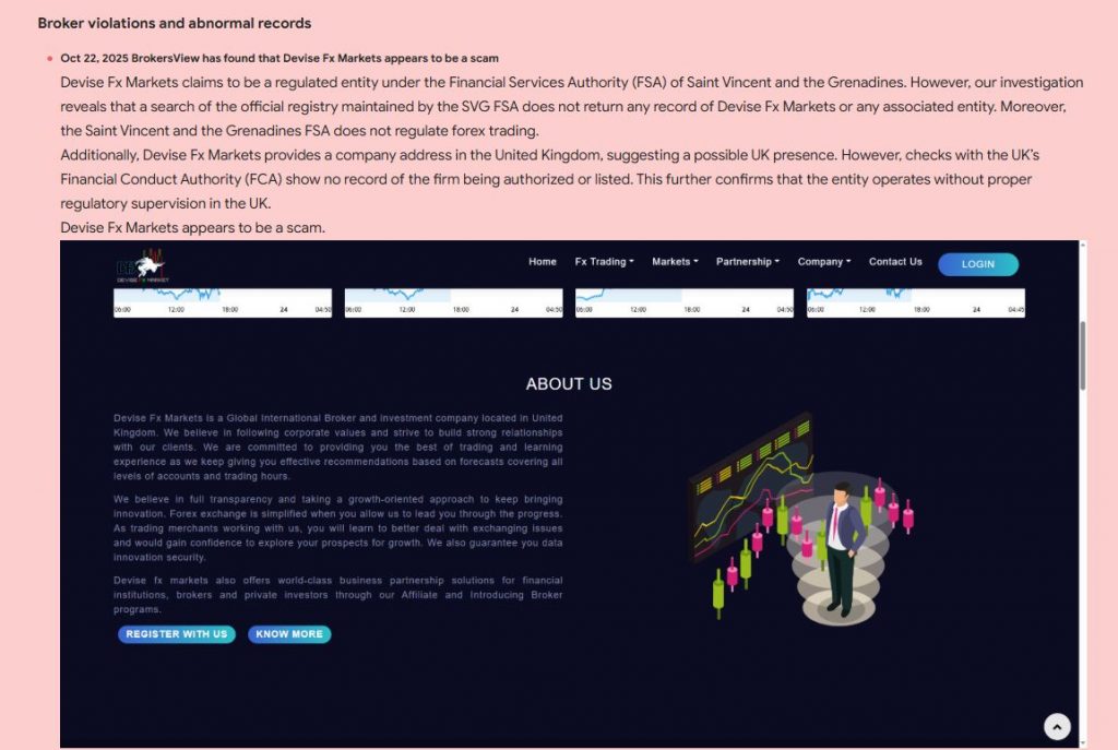 This article provides a complete DeviseFX Markets review. DeviseFX Markets (devisefxmarkets.com) presents itself as a global online trading platform. The broker claims to offer forex, indices, commodities, and cryptocurrency trading. It promotes modern technology, professional support, and secure trading conditions. However, the domain registration appears very recent, and there is no proven company history. The website lacks essential details about the team and business structure. These missing elements raise serious doubts about the broker’s credibility and reliability.
