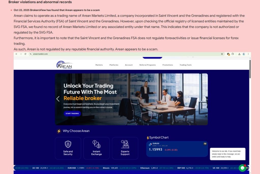 This article provides a detailed Arean Market review. Arean Market (areanmarket.com) introduces itself as a professional global trading platform. It claims to offer forex, commodities, indices, and cryptocurrency trading. The broker promotes fast execution, tight spreads, and expert support. However, the domain registration appears very recent. There is no clear company history or background information available. The broker’s website lacks transparency about ownership and management. These factors raise questions about the platform’s legitimacy and long-term reliability.