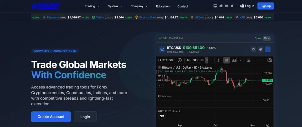 This article presents a detailed ApexTradeExchange review. ApexTradeExchange (apextradeexchange.com) describes itself as a global trading platform. It claims to provide access to forex, stocks, commodities, and cryptocurrencies. The broker promises innovative technology, expert guidance, and high profitability. However, the domain registration appears recent, showing limited operational history. The company does not disclose its management team or ownership structure. Lack of verified background information raises concerns about its transparency and reliability. These missing details make the broker appear suspicious to cautious traders.