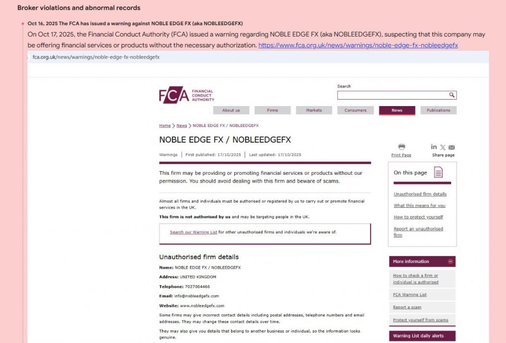 This article provides a clear and detailed NobleEdgeFX review. NobleEdgeFX (nobleedgefx.com) introduces itself as a global online trading platform. It claims to offer access to forex, commodities, indices, and cryptocurrency markets. The broker promises professional tools, fast execution, and easy access for traders of all levels. However, the domain registration appears recent, showing limited operational history. The company provides no information about its founders or management team. This lack of transparency raises doubts about the broker’s reliability and credibility.