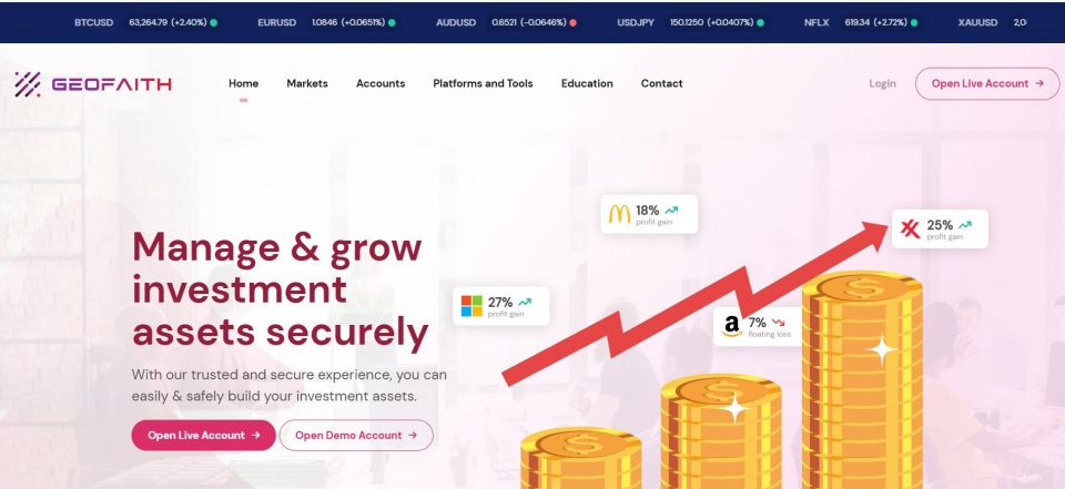 Geofaith likely uses professional branding to lure clients. They show fake profit charts to build trust. Then they introduce surprise withdrawal fees. After payments, service stops and the site vanishes. Users end up with losses and no recourse.