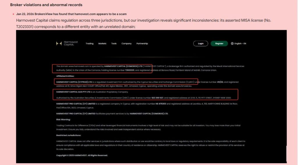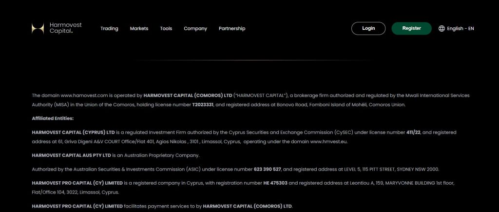 HamoVest does not clearly disclose any regulatory authorization.