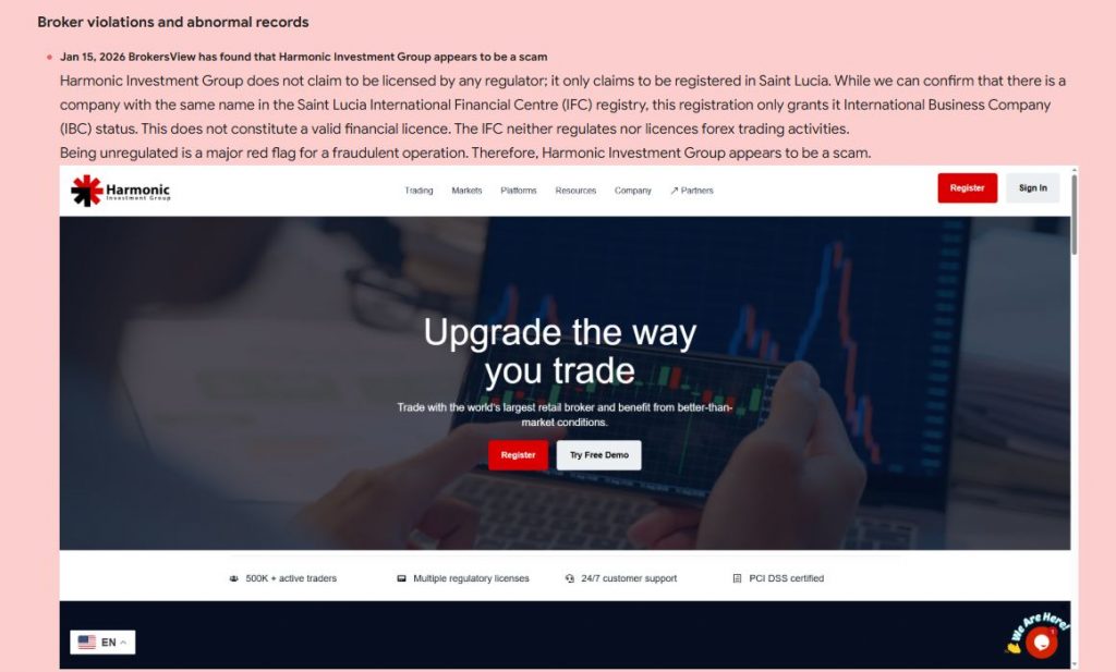 Claimed Licenses and Regulation of Harmonic Groups scam broker