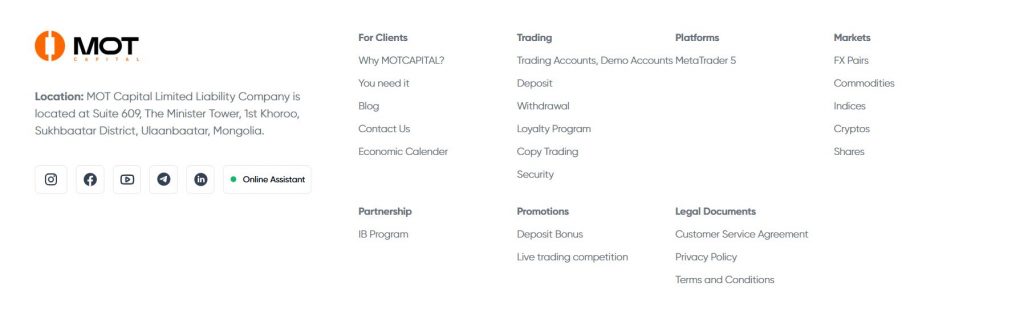 MOTCapital claims to operate under Mongolian jurisdiction. However, the broker does not provide any visible regulatory license number. There is no confirmed oversight from a recognized international financial authority. Without proper regulation, trader protection is nonexistent. Unlicensed brokers can operate without restrictions or accountability. This puts client funds and trading conditions at significant risk.