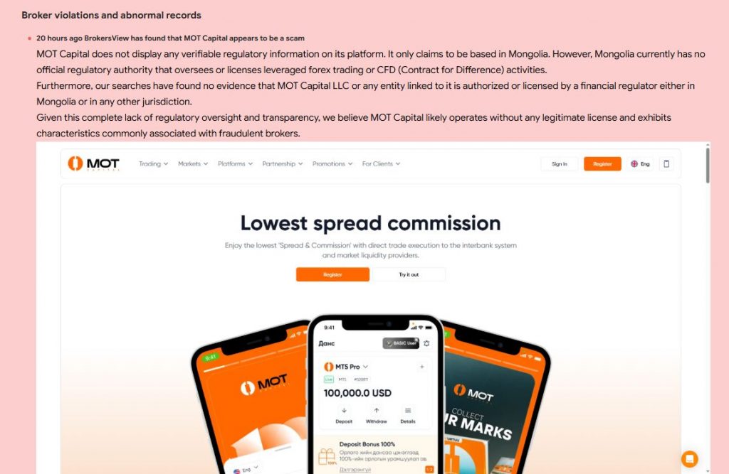 MOTCapital displays several serious red flags for investors. It lacks verified regulation and hides important trading terms. Client reviews highlight withdrawal problems and poor support. The broker offers no real transparency about its operations. These are classic signs of a high-risk or dishonest platform.