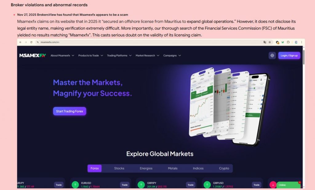 MSAMEXFX (msamexfx.com) presents itself as a global trading provider.