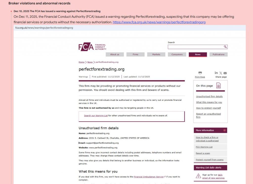 PerfectForexTrading shows several warning signs.