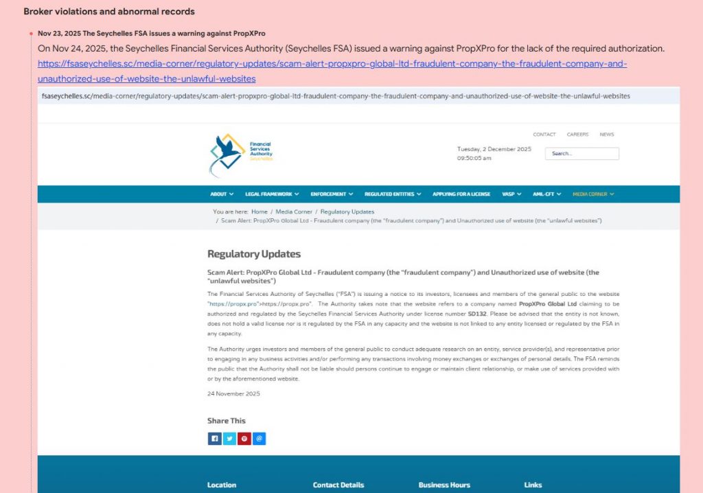 PropX.Pro may present itself as a modern prop‑trading firm with broad asset access and profit‑sharing potential. However, the lack of regulation, legal transparency, trading condition clarity, and user trust all indicate a dangerous level of risk. Depositing funds or trusting this firm with significant capital would be unwise. We strongly advise avoiding PropX.Pro and instead choosing brokers or prop firms with verified licenses, transparent conditions, and proven user reputations.