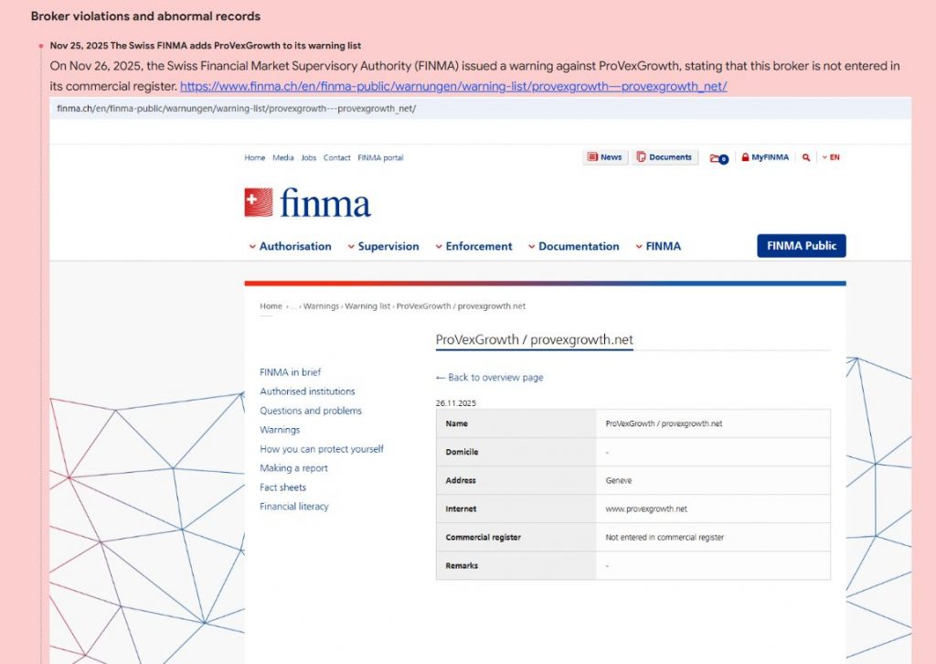ProvexGrowth displays several common scam indicators.