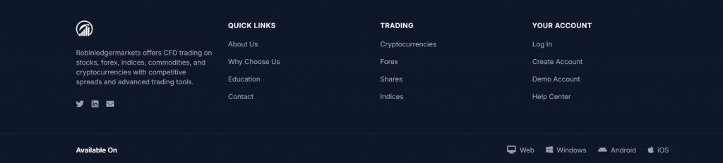 RobinLedgerMarkets (robinledgermarkets.com) presents itself as a global trading platform.