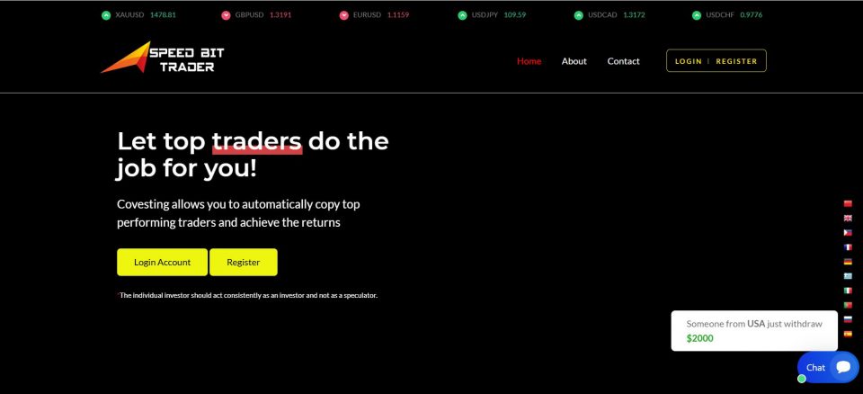 Speedbitrader.pro broker claims to provide online trading services.