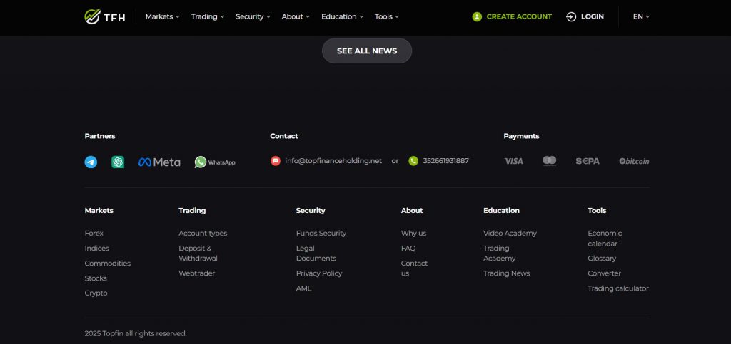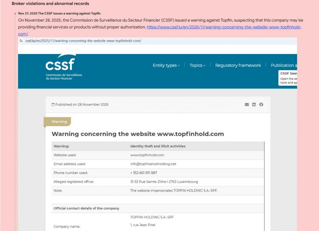 TopFinHold (topfinhold.com) claims to operate from Luxembourg. However, there is no proof of regulation from any authority. The site does not provide a license number or regulatory agency. No legal documents are available for review on the platform. This lack of regulation puts traders at serious risk. Unlicensed brokers often ignore standard financial protection rules.