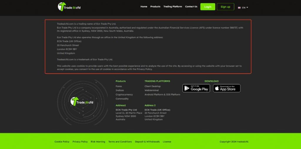 General Information About TradeAICFD broker review