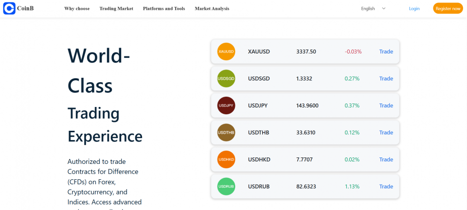 The site lists forex, CFD, and crypto asset classes. Yet it hides critical data like spreads and leverage rates.