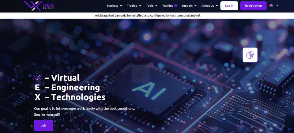 Vex Group (vex-group.pro) claims to offer advanced trading services. The broker promotes AI-driven tools and arbitrage bots. However, the domain was registered in November 2024, indicating a very recent establishment. The website lacks transparency about its team and physical location, raising immediate concerns.