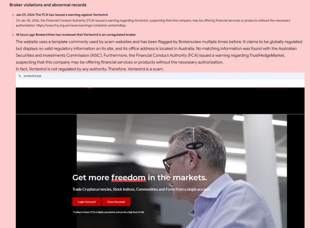 VortexTRD (vortextrd.top) presents itself as a global online trading provider.