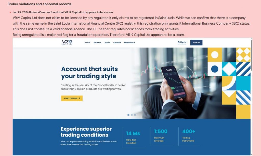 Experts consider VR19 Capital a high-risk trading platform.