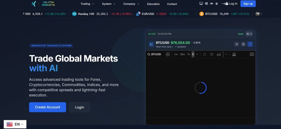 Xelfin Markets advertises a proprietary web-based trading platform.