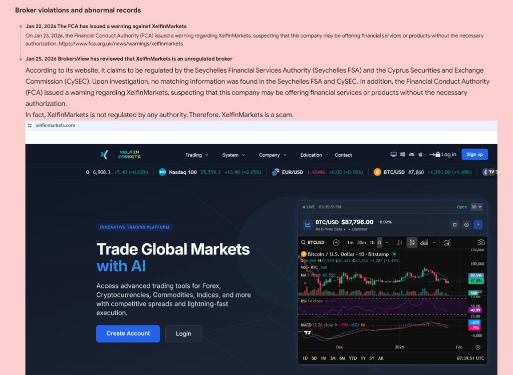 Xelfin Markets shows numerous alarming red flags.