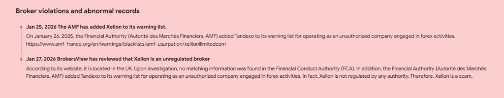 Xeliion Limited does not clearly display regulatory authorization.