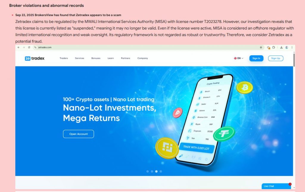 Zetradex claims regulation by Mwali International Services Authority. This regulator is based offshore and has weak enforcement standards. There is no license from top regulators like FCA or ASIC. That absence lowers trust in the broker’s legal framework. Unregulated brokers often avoid accountability and offer no client protection.
